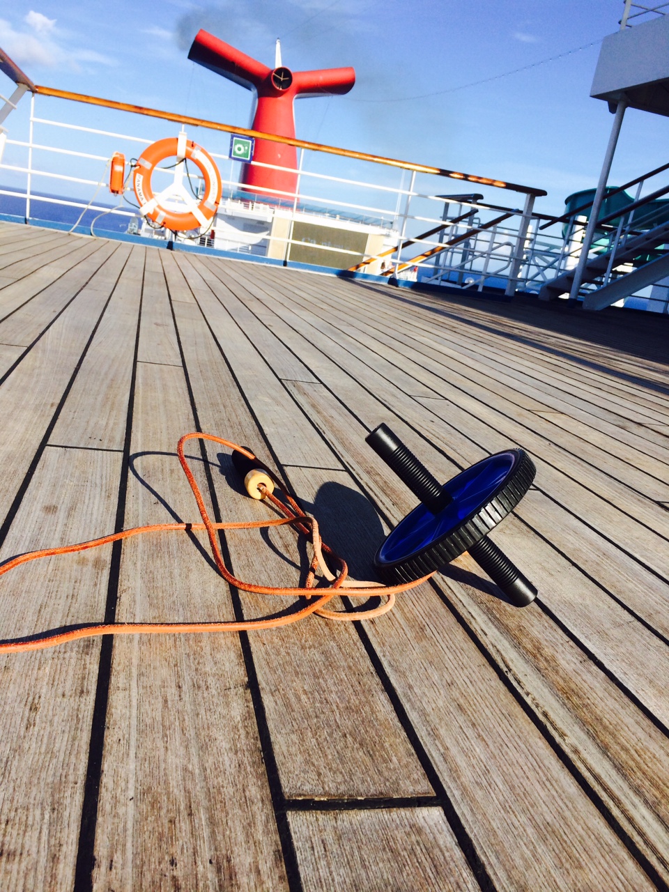 I choose to keep fitness my priority by planning ahead. By doing so, I can allow for a break in my strength training without being completely lazy for a week away from my equipment. This would be a “planned periodization”. Rather that hope the ship has equipment that I would use, I planned my workouts around a few tools that would only take up minimal space in my luggage.